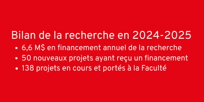 En cette fin d’année, c’est avec une grande fierté que je vous présente notre Rapport annuel 2024-2025, qui met en lumière les faits saillants et les principales réalisations de la Faculté en lien avec l’enseignement, la recherche, la contribution sociale, le rayonnement et la gestion. Il illustre la force de notre communauté et la richesse des projets qui nous animent. Je vous invite à le parcourir pour mesurer l’ampleur du travail accompli et l’engagement de nos équipes.